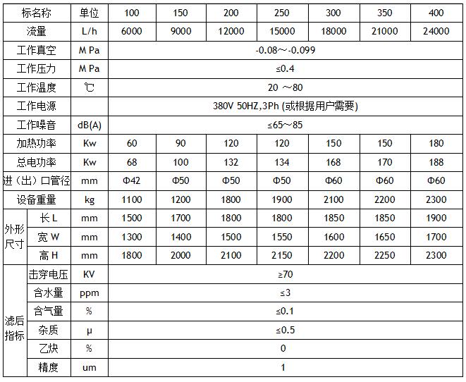 特高壓變壓器油真空濾油機(jī)參數(shù):