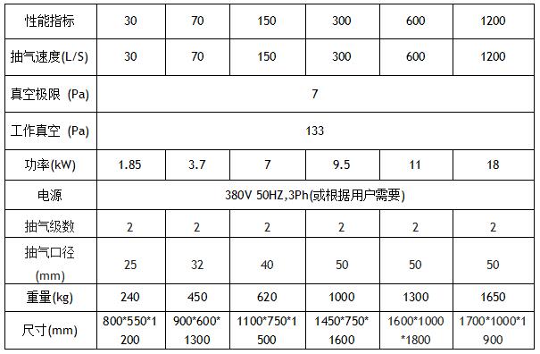 并聯(lián)真空泵羅茨泵多級真空抽氣機組參數(shù):