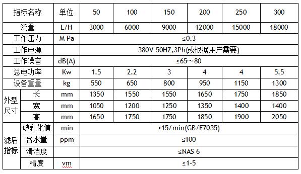 大型柴油脫水聚結(jié)過濾凈化設(shè)備參數(shù):