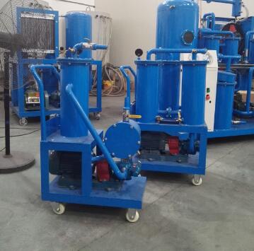 濾油機(jī)的結(jié)構(gòu)包括:油泵、初濾器、聚結(jié)分離器、靜電吸附器、脫色凈化器、真空蒸發(fā)罐、過(guò)濾裝置、冷凝器和真空泵等部分。不純凈的油在大氣壓強(qiáng)的作用下,經(jīng)初濾器進(jìn)入真空蒸發(fā)罐。待油加熱到60度到70度后噴入真空室,成為細(xì)小的油滴。油中的水分快速蒸發(fā)為水蒸汽,進(jìn)入冷凝器冷凝后排出。未冷凝的水蒸汽則由真空泵排至大氣中。匯集在真空蒸發(fā)罐底部、已經(jīng)蒸發(fā)脫水的油被油泵送入過(guò)濾裝置,濾去油中的固體雜質(zhì),進(jìn)一步吸收掉微量水分。真空濾油機(jī)能顯著地提高提純油的效果。