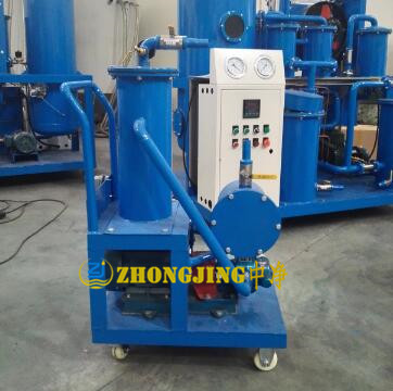 由初濾器、油泵和過濾裝置組成。初濾器為一筒狀金屬網,阻止不純凈油中較大的固體顆粒進入油泵。油泵通常為齒輪泵,輸送不純凈油進入過濾裝置。過濾裝置為一小型手工壓緊的板框壓濾機,用專用濾紙作過濾介質。不純凈油在油泵壓力作用下進入板框壓濾機,透過濾紙成為濾清油。油中的固體雜質被截留在濾紙表面,少量的水分被濾紙的毛細孔吸收。過濾壓力通常不大于0.3兆帕。當濾紙表面沉積雜質太多,過濾壓力升高到0.35兆帕時,或當濾紙吸收的水分接近飽和,濾清油中殘留的水分不再降低時,應停機更換濾紙。油的粘度較高時,可預熱以降低粘度后再行過濾。這種濾油機只能除去固體雜質和少量水分,適用于一般電器用油和潤滑油的提純。當油中含水分和雜質過多時,須經預處理后再送入濾油機。普通濾油機的處理量為25~200升/分。過濾裝置的方形濾框有200毫米、250毫米兩種框內邊長。濾板和濾框用鑄鐵或聚丙烯制成。